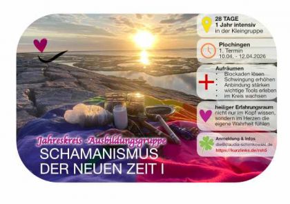 INFO: Der Abschluss eines Ausbildungsjahres beinhaltet nicht, dass Du dann Schamane bist. Dieser Titel wird nur aus der geistigen Welt verliehen und kann nicht durch eine weltliche Ausbildung erlangt werden. Sehr wohl wirst Du jedoch schamanische Techniken gelernt haben.