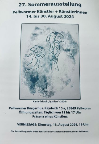 Ich freue mich sehr, dass ich in diesem Jahr Teil der Sommerausstellung der Pellwormer Künstler sein darf. So eine Gemeinschaftsausstellung hat nochmals eine andere Strahlkraft und die Kunstwerke treten miteinander in Dialog. Ich bin schon sehr gespannt darauf.