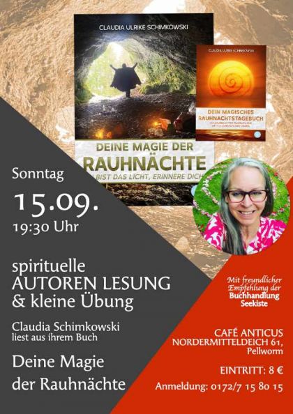 Ich lese aus meinem ersten spirituellen Ratgeber „Deine Magie der Rauhnächte“ und mit kleiner Meditation. Eine ganz andere und nahe Lesung zu den Rauhnächten. Ganz praktisch und anwendbar werden wir mit dem passenden Kartenset arbeiten und einen kurzweiligen Abend erleben.