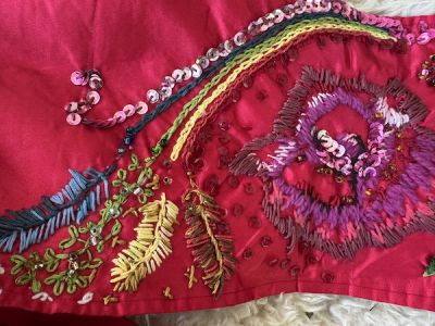 Über eine Mediation finden wir uns in die jeweilige Energie des Lebensabschnitts ein. Gemeinsam ehren und sehen wir was war. Dein Leben wandelt in diesem Prozess sich in Deine Kraft, diese arbeitest Du stickend in Deinen Gürtel.
