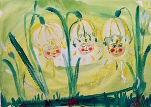 Recht schnell fanden wir einen Weg, auf dem wir vom Hauptweg abbiegen konnten und genossen Landschaft und märchenhaften Wald. Jetzt waren wir auch wieder allein und für uns, so wie wir unsere Spaziergänge mit den Hunden normalerweise legen. Ganz beseelt machte ich mich kaum zu Hause angekommen auch direkt an einen Malprozess, um die Botschaft der Pflanzendeva für mich aufzunehmen.